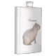 The product is a good size and came exactly as it was pictured. The lid is not attached to the flask, which could be dangerous on drunken nights... The print came out surprisingly well and looks very sharp. Would definitely recommend.