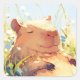 This charming capybara sticker features a peaceful capybara lying back in a sunlit meadow, surrounded by delicate wildflowers. With its eyes closed and a soft smile, the capybara radiates pure relaxation and happiness. The warm sunlight filtering through the grass and flowers enhances the dreamy and tranquil atmosphere. The gentle mix of yellow, blue, and white flowers creates a serene and natural setting, making this design perfect for capybara lovers, nature enthusiasts, and those who enjoy cosy and uplifting imagery.
