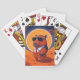 Funny playing cards with a capybara on planet mars wearing a suit and sunglasses with the sun at the back.