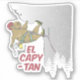 A funny cartoon illustration of a capybara rock climbing. The capybara is wearing a climbing helmet and harness. The text is a pun, a mix-up of El Capitain and Cabybara. A fuunny design for kids who love capybaras or anyone who loves to climb.