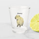 A watercolor of a cute capybara adorns this customisable shot glass!