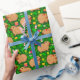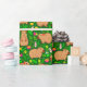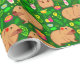 Capybara Sketch with Spring Flowers on Green Wrapping Paper