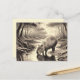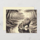 This postcard featuring a capybara drinking from a stream amidst trees and tree roots, has the look of an antique etching. It's a great postcard to send to someone who likes capybaras and vintage art and illustrations.