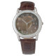 The watch looks really great! Very sharp and well done. The leather band is really nice, though for a man's watch I think it should be longer. Unfortunately, it isn't big enough for my husband's wrist but I will get a replacement because he is very excited to wear it!