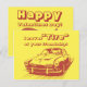 On the front of the card is a playful pun featuring a car driven towards the viewer. Children of all ages love a good, cute joke, especially a clever play on words. This card shows an older car that is driving forward with action lines around it. The back ground is a bright yellow with the image and print being a deep maroon causing it to pop out in contrast. Next to the car is the text “I never “Tire” or your friendship. This card will be a definite hit with the boys during valentine’s day!