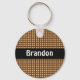A modern design featuring a caramel chequered pattern background. A band of black accents name. Customise as desired.