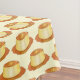Tablecloth features an original food-themed marker illustration of a delicious caramel flan custard dessert.