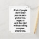 Humourous text for the person we all know; they only talk about themselves and their latest accomplishments and lifestyle. Man, I have issues. Anyway, you can wear or carry this message with you for all to see, but we know the person in question won’t get the message.