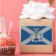 A silver chrome like Scottish thistle applique design on a racy blue carbon fibre style Scotland flag print background for a great custom gift.