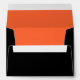 Card envelope shown in halloween colours black and orange with a ghost print.