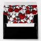 Card envelope shown in black with a red roses vine art print design on the inside.
