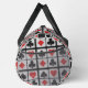 I actually had been searching other sites for a duffle gym bag and I couldn't find any. This one is just what I was looking for with all the features. The inside zip pocket, the outside mesh pocket and LOTS of room inside. Love the printing. Really like how the floral print turned out.