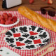 Set of four card suit icons red, black and white colourful pattern. These casino Paper Plates are perfect for anyone who enjoys card games like poker, bridge or blackjack. A fun gift for friend, coworkers or family on Christmas or Birthdays, and any gift-giving occasions!