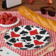 Set of four card suit icons red, black and white colourful pattern. These casino Paper Plates are perfect for anyone who enjoys card games like poker, bridge or blackjack. A fun gift for friend, coworkers or family on Christmas or Birthdays, and any gift-giving occasions!