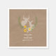 Paper napkins featuring an illustration of two deer inside a wildflower wreath over a brown paper cardboard inspired background. Personalise the text. Look for matching invitations and other coordinating items at Jill's Paperie.