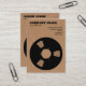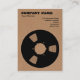 A business card template with a cardboard image texture background and a bold image of a recording tape spool. Company name, business type and address on the front with name, job title, telephony, web and email addresses on the back, with the same camera motif. This card can also be further customised.