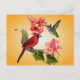 Cardinal and Hummingbird with Pink Lilies and Ivy Postcard