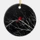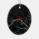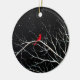 This male cardinal finds himself caught on a cold night upon a pair of branches heavy with the wintry snow.