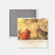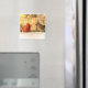 Here is a magnet featuring Mr. and Mrs. Northern Cardinal. It is autumn with glorious foliage in the background but the first snow has fallen to give us a preview of winter. He is a brilliant red color. She is orange, gold and brown. Both have crests and orange beaks. They are truly the royalty of backyard birds with their distinctive song and lovely colors.