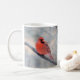 Bright red Northern Cardinal is a lively accent on useful ceramic mugs. Also available on travel mug, this makes a cheerful addition to any kitchen !