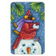 CARDINAL GUARDING SNOWMAN, CUTE CHRISTMAS REDBIRD MAGNET