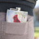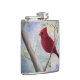 From an original mixed media painting by Brenda Thour of a red male cardinal sitting on a bare tree branch with an abstract blue and pink sky. Copyright by Brenda Thour 2005.