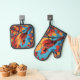 A beautiful red cardinal perches among orange and gold leaves, with blue sky behind him, on this gorgeous oven mitt and pot holder set. Perfect for anyone who loves birds, nature, and the outdoors.