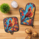 Cardinal in Autumn Oven Mitt & Pot Holder Set
