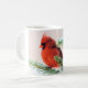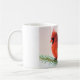 A vibrantly red male cardinal sits fluffed against the cold on a fir branch delightfully dusted by snow. Ideal for any bird or nature lover for the winter holiday season!