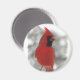 This magnet features a brilliant red cardinal. He is truly the king of backyard birds! Here he is perched on a snowy rail eating black oil sunflower seeds while the winter snow swirls around him.