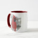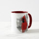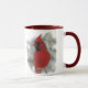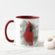 This mug feature mirror images of a brilliant red cardinal. He is truly the king of backyard birds! Here he is perched on a snowy rail eating black oil sunflower seeds while the winter snow swirls around him.
