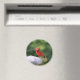 This magnet features a red cardinal perched on the edge of a birdbath in New England.