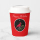 Cute cardinal and star on black and red Christmas Party Cups All text ready to be personalised.