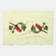 A lovely addition to your Christmas kitchen or bath decor, this towel features an illustration of a vivid red cardinal perched upon a translucent branch with green ivy leaves set against a creamy light yellow background.