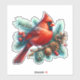 A vivid red cardinal perches gracefully on a snow-dusted pine branch, surrounded by clusters of glossy red berries and intricate pinecones, evoking the cosy stillness of winter. This detailed composition blends photorealistic textures with stylised, painterly strokes, creating a striking balance between realism and artistic interpretation. The feathers shimmer with layers of scarlet and crimson, contrasted beautifully by the cool blue-greens of the pine needles. Ideal for seasonal or nature-inspired themes, this design radiates warmth and serenity while maintaining a modern, woodland aesthetic. Whether used in festive settings or year-round nature décor, the harmony of colours and the lifelike expression of the cardinal make it an eye-catching focal point. AI generated artwork.