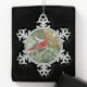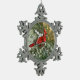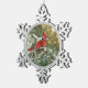 Snowflake shaped ornament adorned with a cardinal in a pine tree. A festive addition for any Christmas tree!