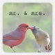 Male and female cardinals sharing breakfast - the male feeds the female during courtship, very sweet to watch
