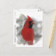 This postcard features a brilliant red cardinal. He is truly the king of backyard birds! Here he is perched on a snowy rail eating black oil sunflower seeds while the winter snow swirls around him.