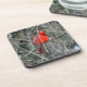 This dynamic red cardinal looks great on cork coasters- nice touch for casual parties !