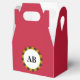 Personalised red design with golden and black round label; customisable text template for your monogram