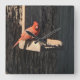 A wall clock featuring a photo of a Cardinal.