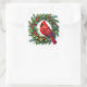 This sticker is shown with a festive holiday cardinal bird on a wreath art print.