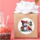 This sticker is shown with a festive holiday cardinal bird with a snowman art print.