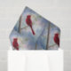 From an original mixed media painting by Brenda Thour of a red male cardinal sitting on a bare tree branch with an abstract blue and pink sky. Copyright by Brenda Thour 2005.