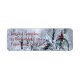The photo on these labels shows a red cardinal and trees after a snowstorm.