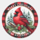 Cardinal with Holly & Buffalo Plaid Background Classic Round Sticker