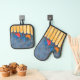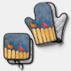Cardinals on Fence in Winter Painting Original Art Oven Mitt & Pot Holder Set