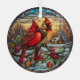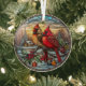 Cardinals on Snowy Branch with Holly Glass Tree Decoration