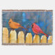 Cardinals on the Fence Painting - Original Art Throw Blanket