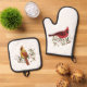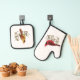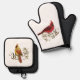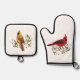 This oven mitt and pot holder set depicts a male cardinal and a female cardinal. These birds symbolise domestic harmony.